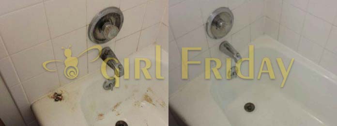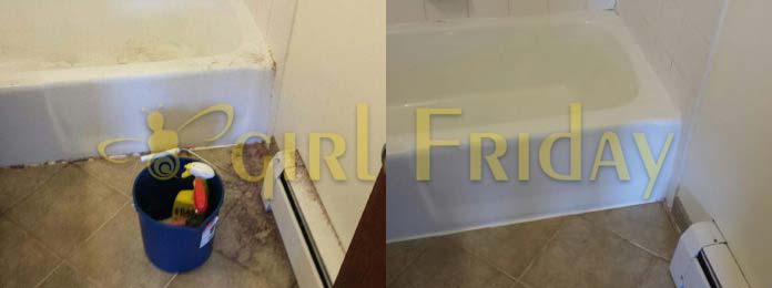 - Tile area behind tub cleaned