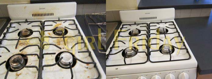 - Range hood and stove top cleaned